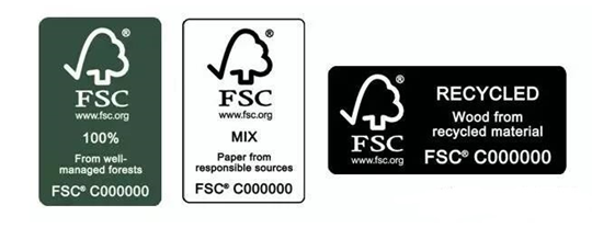 在木材或木制品上的FSC标志是确保你的产品使用或含有来自FSC森林认证或来自消费后废物的木材。有三种类型的标签,如下: