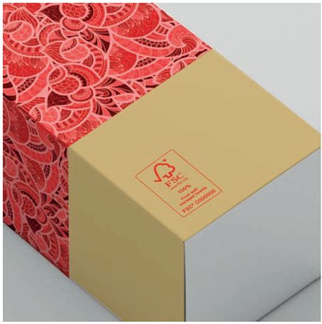 例如包装彩盒只有金色和红色作为印刷颜色,那持证企业可以在金色底上使用红色的FSC标签。